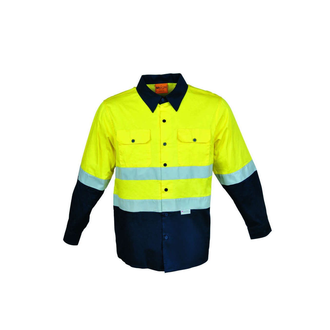 High-Vis Light Weight Long Sleeve Cotton Drill Work Shirt with 3M Reflective Tape, with Mesh Vents at Under Arms.